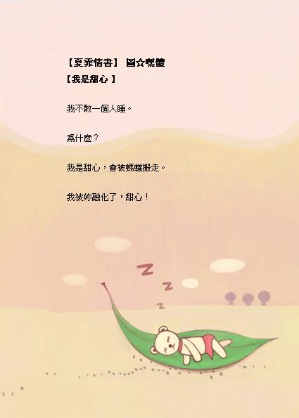 「我不敢一個人睡覺。」撒嬌地,妳說。